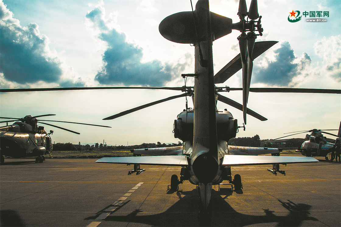 晨光破晓,第74集团军某陆航旅数架战鹰在机场待命,振翅欲飞。侯向坤摄